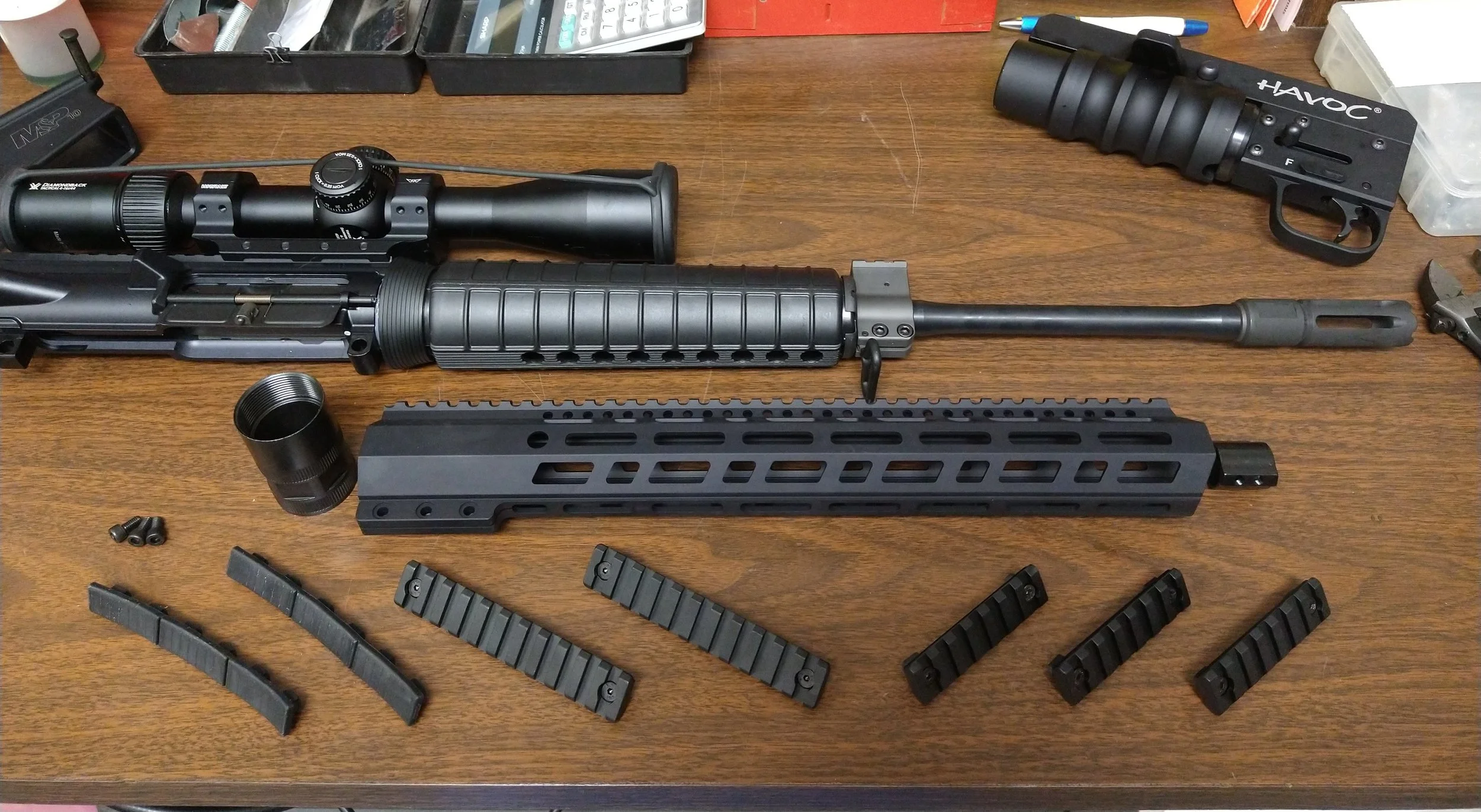 Installing scope or optic bases, rings/plates properly leveling, torquing and thread locking optics in place and boresighting them to 30 yards.